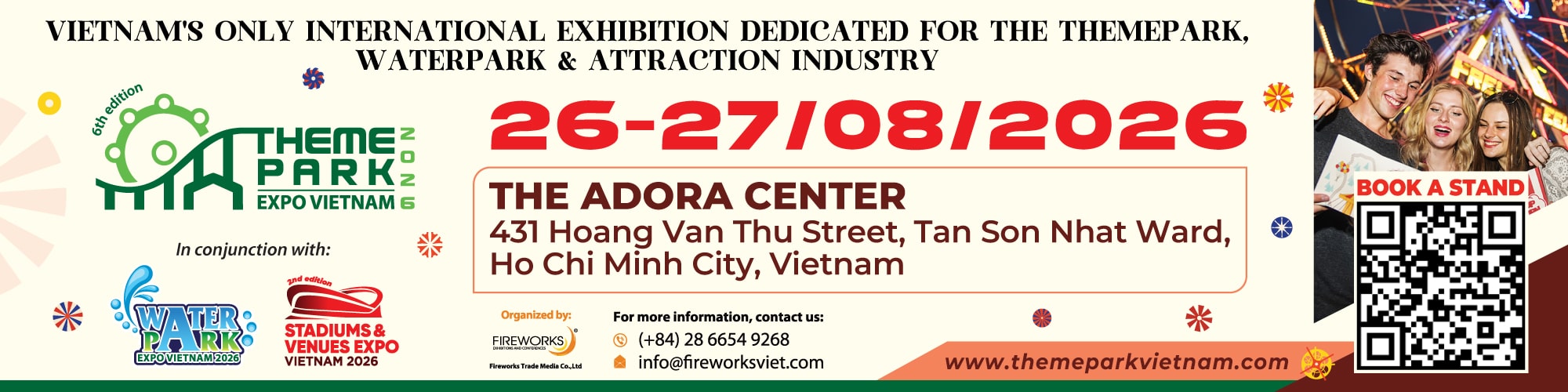 THEME PARK EXPO VIETNAM 2026 will be held at The ADORA Center, located in a busy location, intersecting many districts and arterial roads of the city, The ADORA Center is the main center with the largest area, as well as owning leading facilities chosen as the place to mark successful events.